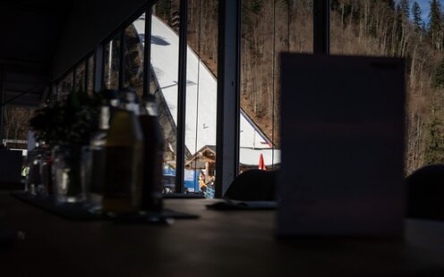 Exklusive Atmosphäre: Im VIP-Bereich erwarten Sie reservierte Tische mit Unternehmenslogo, persönlicher Ansprechpartner und aufmerksamer Hostessen-Service. Genießen Sie kurze Wege, direkten Blick auf die Schanze und ein Ambiente, das Sport, Genuss und Networking vereint. I (C) DSV SkiDeutschland 2025