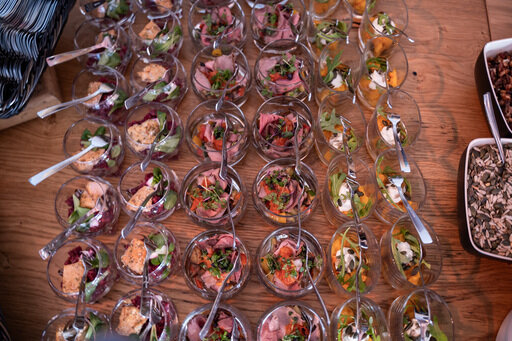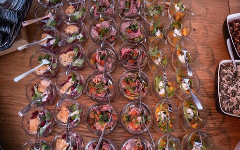 Kulinarik auf höchstem Niveau: Vor und nach den Rennen sowie in der Durchgangspause verwöhnen wir Sie mit gehobener Küche – von feinen Vorspeisen im Glas und wärmenden Suppen über vielfältige Hauptgerichte bis hin zu raffinierten Desserts. Selbstverständlich stehen auch vegetarische Optionen für Sie bereit. I (C) DSV SkiDeutschland 2025