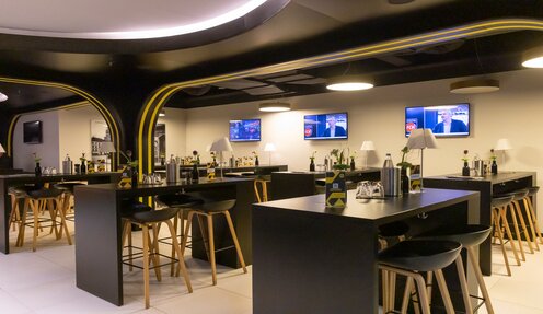 - Exklusiver Hospitality-Bereich mit fest reservierten Tischen